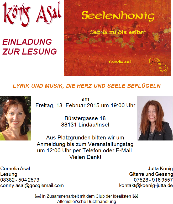 | Cornelia Asal: | Lesung "Seelenhonig" |